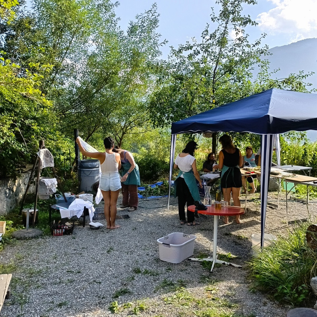 Just like every year, Esther Grischott from Pignia will once again be heating the large “Dirty Pot”—an old wash tub—over a fire for the Eco Print workshop.